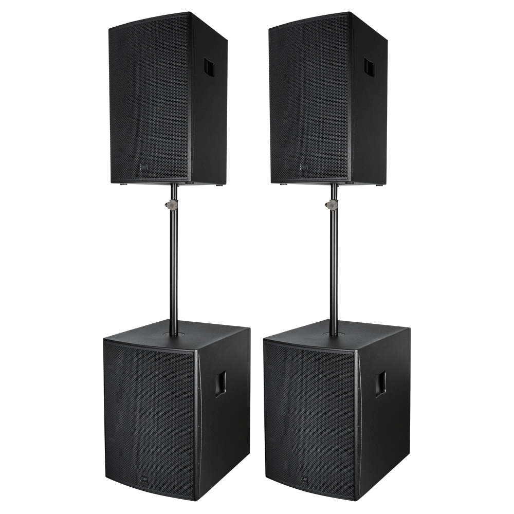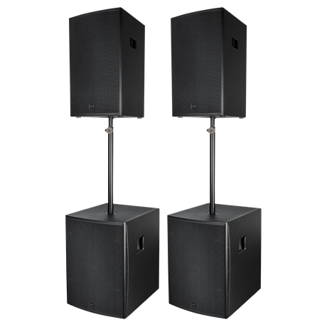 The NRG Set 1518 delivers maximum low‑frequency authority with the NRG‑18S subwoofer, paired with the articulate NRG‑15 full‑range top. It’s the go‑to choice for high‑energy shows, larger venues and rental packages where deep, controlled bass and clear mids/highs are essential.