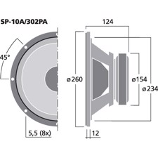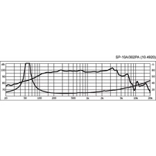 Her er du: Disconetto » LYD » Højttalere » Højttaler enheder » PA mellemtonehøjttalere 10'' højttaler - SP-10A/302PA - IMG STAGE LINE På lager På lager, 2-4 dage Bedømmelse for 10'' højttaler - SP-10A/302PA - IMG STAGE LINEProduktet er endnu ikke bedømt 1.249,00DKK ved 1 stk. Vis uden moms Trustpilot Professional PA bass-midrange speaker, 600WMAX, 300WRMS, 8Ù Professional PA bass-midrange speaker, 300 W, 8 ΩOf very high power capability25 cm (10") professional speaker of long excursionDiecast basketCone with water-repellent coatingVery neat workmanship with a front-facing basketWide frequency response of low distortionHigh efficiencyDrive system with drilled pole core and additional magnet for optimising the magnetic field and impedance linearisationFor compact bass-reflex cabinets from 20 litres on alreadyFor all kinds of professional and semiprofessional PA applicationsHOBBY HiFi 01/2017"Bass driver providing a top-class sound for compact bass-reflex cabinets of about 40 litres, suitable for 2-way systems." Impedance (Z)8 ΩTransmission method-Frequency rangef3-3,500 HzResonant frequency (fs)55 HzRec. crossov. frequ. (fmax.) (12 dB/oct.)-Power rating300 WPeak music power output600 WSensitivity98 dB/W/mMax. rated SPL-Max. voltage-Radiation angle, horizontal-Radiation angle, vertical-Suspension compl. (Cms)0.24 mm/NMoving mass (Mms)35 gMech. Q factor (Qms)7.44Electr. Q factor (Qes)0.31Total Q factor (Qts)0.30Equivalent volume (Vas)40 lDC resistance (Re)6.4 ΩForce factor (BxL)15.82 TmVoice coil induct. (Le)0.65 mHVoice coil diameter66 mmVoice coil formerKaptonLinear excursion (XMAX)±4 mmEff. cone area (Sd)346 cm2Magnet weight2 kgMagnet diameterØ 154 mmMounting cutoutØ 234 mmMounting depth112 mmMounting hole diameter-Hole spacing X-axis-Hole spacing Y-axis-DimensionsØ 260 mm x 124 mmOutside diameterØ 260 mmWidthØ 260 mmHeight-Depth122 mmProtective class-Admiss. ambient temp.0-40 °CWeight5 kgPacking unit1Type of speaker10" Varenr.: 104920 Vi anbefaler Højttalergitter 10" DKK 66,00 Monterings skrue. 5 x 30 mm. 16 stk. DKK 70,00 Delefilter 2-vejs - DN-1218PAX - MONACOR DKK 459,00 MZF-8625 vinkelbeslag, gitter clamp DKK 8,00