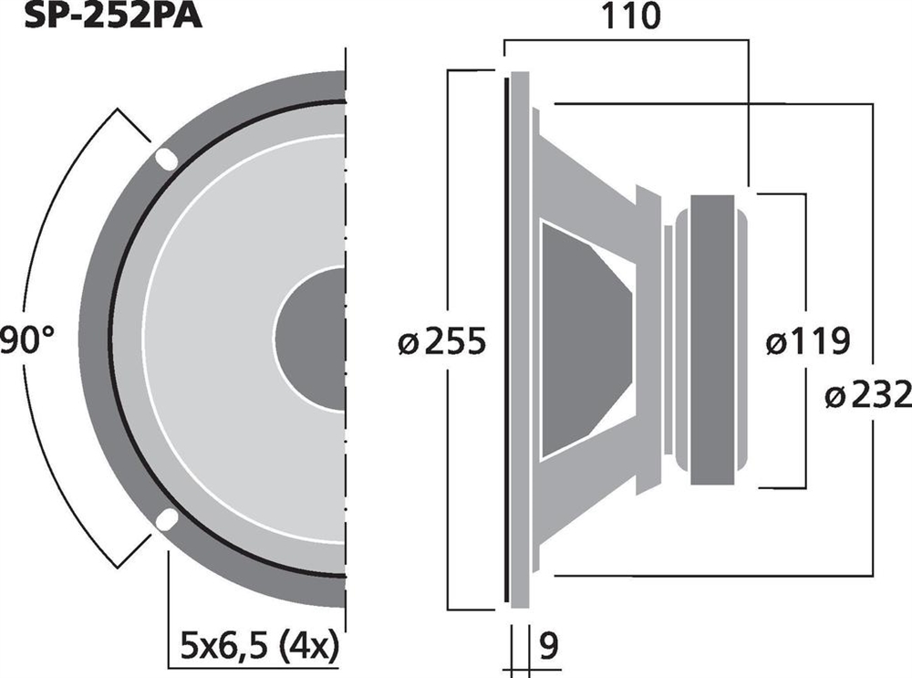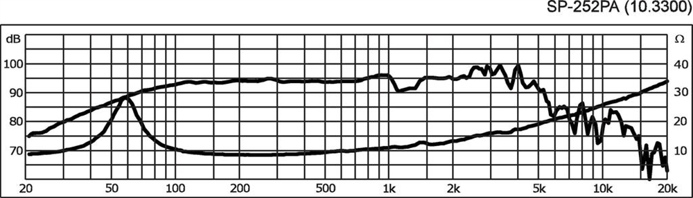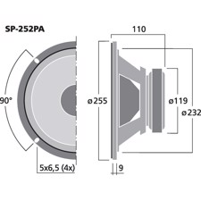 Her er du: Disconetto » LYD » Højttalere » Højttaler enheder » Hi-Fi højttalere » 10" 10'' højttaler - SP-252PA - MONACOR På lager På lager, 2-4 dage Bedømmelse for 10'' højttaler - SP-252PA - MONACORProduktet er endnu ikke bedømt 529,00DKK ved 1 stk. Vis uden moms Trustpilot Universal bass-midrange speaker, 75 W, 8 ΩFor bass-midrange applications, also in power speaker systems. Impedance (Z)8 ΩTransmission method-Frequency rangef3-4,500 HzResonant frequency (fs)55 HzRec. crossov. frequ. (fmax.) (12 dB/oct.)-Power rating75 WPeak music power output150 WSensitivity90 dB/W/mMax. rated SPL-Max. voltage-Radiation angle, horizontal-Radiation angle, vertical-Suspension compl. (Cms)0.18 mm/NMoving mass (Mms)30 gMech. Q factor (Qms)2.13Electr. Q factor (Qes)1.0Total Q factor (Qts)0.7Equivalent volume (Vas)30 lDC resistance (Re)7.7 ΩForce factor (BxL)9.7 TmVoice coil induct. (Le)0.6 mHVoice coil diameterØ 39 mmVoice coil formeraluminiumLinear excursion (XMAX)±2.5 mmEff. cone area (Sd)350 cm2Magnet weight850 gMagnet diameterØ 119 mmMounting cutoutØ 232 mmMounting depth110 mmMounting hole diameter-Hole spacing X-axis-Hole spacing Y-axis-DimensionsØ 255 mm x 110 mmOutside diameterØ 255WidthØ 255 mmHeight-Depth110 mmProtective class-Admiss. ambient temp.0-40 °CWeight2.21 kgPacking unit1Type of speaker10" Varenr.: 103300 Vi anbefaler Højttalergitter 10" DKK 66,00 Monterings skrue. 5 x 30 mm. 16 stk. DKK 70,00 Delefilter 2-vejs - DN-2618P - MONACOR DKK 389,00 MZF-8625 vinkelbeslag, gitter clamp DKK 8,00