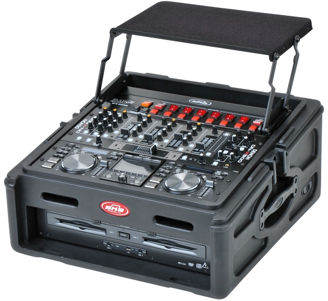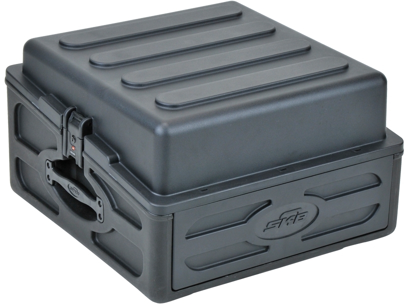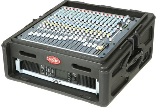 10 Unit for topmontering samt 6 Unit på fronten til forstærker og effekter etc. SKB R106 har hårde låg og sider samt let adgang for af kabler via låger, der kan åbnes på de korte sider. Plads findes så tilbehørshylden AV-8 kan monteres også med låget lukket! (AV-8 sælges separat)