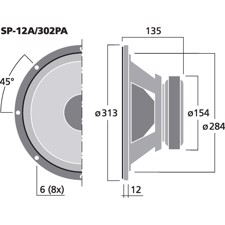 "With the SP-12A/302PA, IMG Stage Line offers a bass speaker of high power capability for 3-way systems which features an impressively deep bass, a superior level stability and an excellent sound quality."