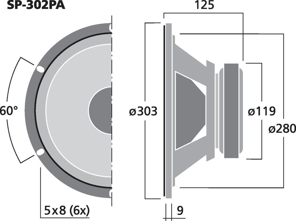 Her er du: Disconetto » LYD » Højttalere » Højttaler enheder » PA bashøjttalere » 12" 12'' højttaler - SP-302PA - MONACOR På lager På lager, 2-4 dage Bedømmelse for 12'' højttaler - SP-302PA - MONACORProduktet er endnu ikke bedømt 509,00DKK ved 1 stk. Vis uden moms Trustpilot Universal bass speaker, 100 W, 8 ΩFor bass applications, also in power speaker systems. Impedance (Z)8 ΩTransmission method-Frequency rangef3-4,000 HzResonant frequency (fs)45 HzRec. crossov. frequ. (fmax.) (12 dB/oct.)-Power rating100 WPeak music power output200 WSensitivity90 dB/W/mMax. rated SPL-Max. voltage-Radiation angle, horizontal-Radiation angle, vertical-Suspension compl. (Cms)0.15 mm/NMoving mass (Mms)57 gMech. Q factor (Qms)2.2Electr. Q factor (Qes)1.47Total Q factor (Qts)0.89Equivalent volume (Vas)51 lDC resistance (Re)7.7 ΩForce factor (BxL)10.5 TmVoice coil induct. (Le)0.5 mHVoice coil diameterØ 38 mmVoice coil formeraluminiumLinear excursion (XMAX)±2.5 mmEff. cone area (Sd)542 cm2Magnet weight850 gMagnet diameterØ 119 mmMounting cutoutØ 280 mmMounting depth116 mmMounting hole diameter-Hole spacing X-axis-Hole spacing Y-axis-DimensionsØ 303 mm x 125 mmOutside diameterØ 303 mmWidthØ 303 mmHeight-Depth125 mmProtective class-Admiss. ambient temp.0-40 °CWeight2.36 kgPacking unit1Type of speaker12" Varenr.: 103310 Vi anbefaler Højttalergitter 12" DKK 97,00 Monterings skrue. 5 x 30 mm. 16 stk. DKK 70,00 Delefilter 2-vejs - DN-1218PAX - MONACOR DKK 459,00 MZF-8625 vinkelbeslag, gitter clamp DKK 8,00 Kunder købte også Mini jack stero forlænger, 6 meter, mec-635 DKK 77,00 RCA/Phono adapter - NTA-104 DKK 36,00 Phono -> 2x phono - CBA-30/SW DKK 110,00