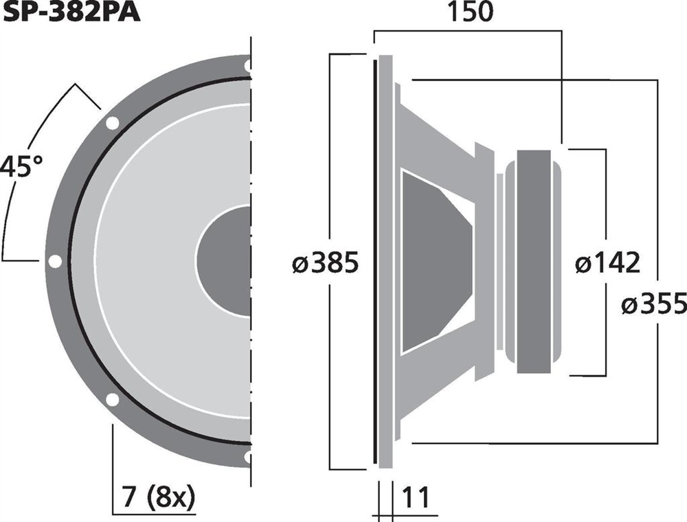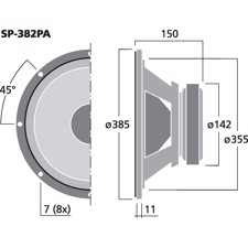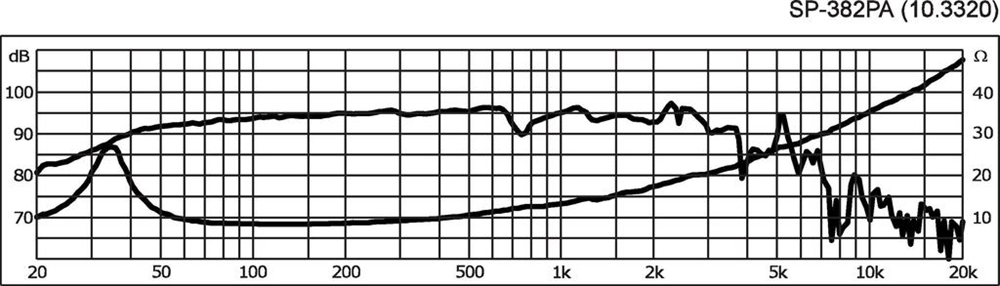 Her er du: Disconetto » LYD » Højttalere » Højttaler enheder » PA bashøjttalere » 15" 15'' højttaler - SP-382PA - MONACOR På lager På lager, 2-4 dage Bedømmelse for 15'' højttaler - SP-382PA - MONACORProduktet er endnu ikke bedømt 889,00DKK ved 1 stk. Vis uden moms Trustpilot Universal bass speaker, 150 W, 8 ΩFor bass applications, also in power speaker systems. Impedance (Z)8 ΩTransmission method-Frequency rangef3-4,000 HzResonant frequency (fs)25 HzRec. crossov. frequ. (fmax.) (12 dB/oct.)-Power rating150 WPeak music power output300 WSensitivity94 dB/W/mMax. rated SPL-Max. voltage-Radiation angle, horizontal-Radiation angle, vertical-Suspension compl. (Cms)0.26 mm/NMoving mass (Mms)73 gMech. Q factor (Qms)3.03Electr. Q factor (Qes)0.99Total Q factor (Qts)0.75Equivalent volume (Vas)270 lDC resistance (Re)7.0 ΩForce factor (BxL)10.87 TmVoice coil induct. (Le)0.8 mHVoice coil diameterØ 50 mmVoice coil formeraluminiumLinear excursion (XMAX)±3.5 mmEff. cone area (Sd)825 cm2Magnet weight1.2 kgMagnet diameterØ 142 mmMounting cutoutØ 355 mmMounting depth139 mmMounting hole diameter-Hole spacing X-axis-Hole spacing Y-axis-DimensionsØ 385 mm x 150 mmOutside diameterØ 385 mmWidthØ 385 mmHeight-Depth150 mmProtective class-Admiss. ambient temp.0-40 °CWeight3.9 kgPacking unit1Type of speaker15" Varenr.: 103320 Vi anbefaler Monterings skrue. 5 x 30 mm. 16 stk. DKK 70,00 Højttalergitter 15" DKK 129,00 Delefilter 2-vejs - DN-1218PAX - MONACOR DKK 459,00 MZF-8625 vinkelbeslag, gitter clamp DKK 8,00 Kunder købte også Horn driver - MRD-34PA - IMG STAGE LINE DKK 299,00 Højttalergitter 15" DKK 129,00 Audiotrafo 5.6mH - LSI-56T - MONACOR DKK 272,00