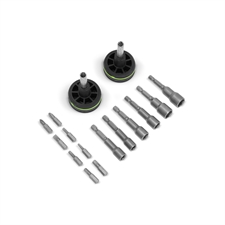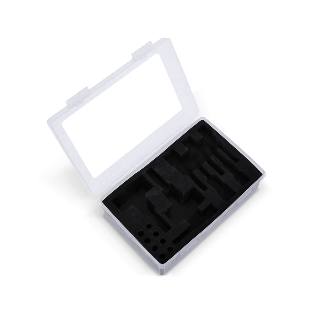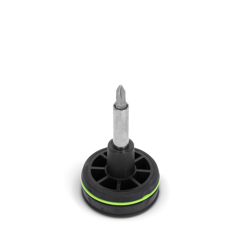 The iconic Gravity Knob doubles as a handle for a practical and compact bit pick-up tool. Its non-slip surface and round shape provide a comfortable and secure grip. The integrated magnetic bit holder securely keeps the bits in place, preventing accidental drops. The X TC 1 tool case includes two knob tools, along with 8 mm, 10 mm, and 13 mm sockets, allowing you to grip and secure (or loosen) screws and lock nuts simultaneously if needed. Additionally, the case contains standard Allen, Phillips, and slotted socket wrench attachments essential for minor service work on your Gravity tripods.