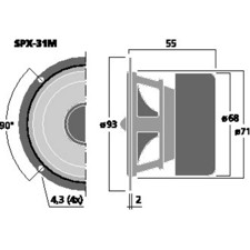 Her er du: Disconetto » LYD » Højttalere » Højttaler enheder » Hi-Fi fuldtone højttalere » 3" 3'' højttaler - SPX-31M - MONACOR På lager På lager, 2-4 dage Bedømmelse for 3'' højttaler - SPX-31M - MONACORBedømmelse: 3.5 ud af 5 baseret på 2 stemmer 236,00DKK ved 1 stk. Vis uden moms Trustpilot Hi-fi full range speaker, 40WMax, 8 ohm Hi-fi full range speaker, 20 W, 8 ΩExcellent sound qualityHigh-quality paper coneAluminium phase plug for optimising radiation patternRear-ventilated centering spiderMagnet system with shieldingApplication in small speakers or satellite systemsIdeally suited for application in FAST speakers (full range and subwoofer technology)HOBBY HiFi 06/2015"Ideally suited as a desktop speaker system.Very neat workmanship." Impedance (Z)8 ΩTransmission method-Frequency rangef3-20,000 HzResonant frequency (fs)110 HzRec. crossov. frequ. (fmax.) (12 dB/oct.)-Power rating20 WPeak music power output40 WSensitivity86 dB/W/mMax. rated SPL-Max. voltage-Radiation angle, horizontal-Radiation angle, vertical-Suspension compl. (Cms)0.92 mm/NMoving mass (Mms)1.9 gMech. Q factor (Qms)3.707Electr. Q factor (Qes)0.69Total Q factor (Qts)0.58Equivalent volume (Vas)1.32 lDC resistance (Re)6.4 ΩForce factor (BxL)3.64 TmVoice coil induct. (Le)0.18 mHVoice coil diameterØ 20 mmVoice coil formerKaptonLinear excursion (XMAX)± 1.1 mmEff. cone area (Sd)32 cm2Magnet weight119 gMagnet diameterØ 68 mmMounting cutoutØ 71 mmMounting depth53 mmMounting hole diameter-Hole spacing X-axis-Hole spacing Y-axis-DimensionsØ 93 mm x 55 mmOutside diameterØ 93 mmWidthØ 93 mmHeight-Depth55 mmProtective class-Admiss. ambient temp.0-40 °CWeight0.49 kgPacking unit1Type of speaker3" Varenr.: 101660 Vi anbefaler Højttalerterminal - ST-960GM - MONACOR DKK 116,00 Monteringsskumliste. 2 x 5 mm. Pakke med 5 stk. á 1,5 meter DKK 49,00 Mont.skrue 4x16mm (16) - MZF-8614 - MONACOR DKK 56,00 Montageskrue M4 - MZF-8604 - MONACOR DKK 46,00 Kunder købte også Basrefleksrør 75mm - MBR-75 - MONACOR DKK 56,00 IMG Stageline - STA-1508, 8 kanals PA-forstærker DKK 6.559,00 IMG STAGE LINE - STA-850D, 8-kanals forstærker DKK 6.089,00