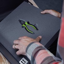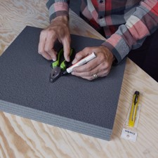 For the perfect measurements, simply place the part on the foam and trace the outline on the foam with a marker. Using the knife included in the kit, carefully cut along the outline on the foam. Make sure that you only cut into the desired layers. The cut-out area can now be clamped, the layers levered open from below and the segment pulled out.