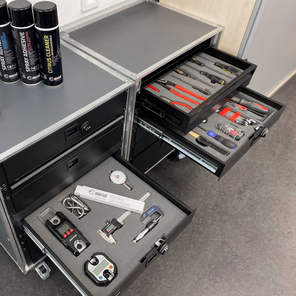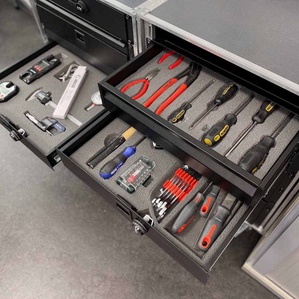 There are numerous products and options available to make sorting and organising the contents of 19" rack drawers easy. From foam inserts for microphones to adjustable dividers and pre-cut foam elements, all products offer excellent solutions. However, Kyoto's foam offers an unprecedented level of adaptability and flexibility while maintaining both durability and stability.