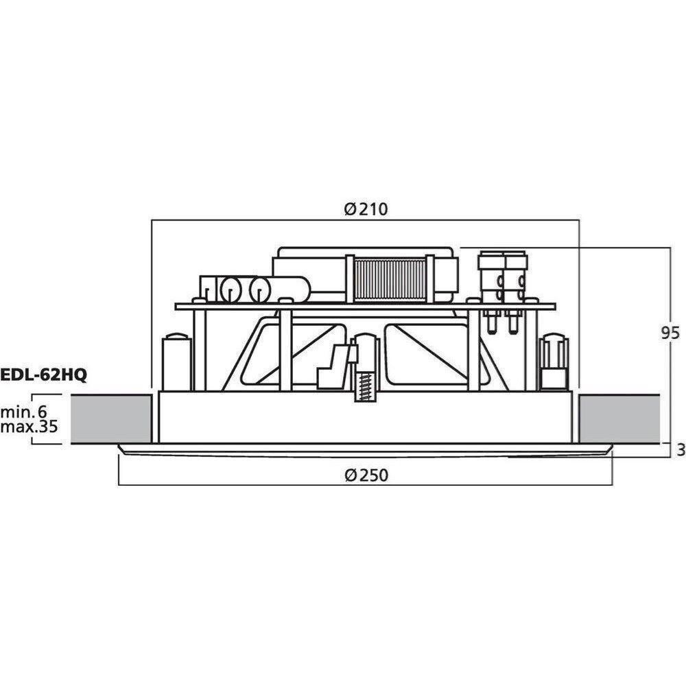 PA hi-fi wall and ceiling speaker, 30 W 100 V transmission technology or 8 Ω operation 2-way version with coaxial dome tweeter 16 cm (6½") bass speaker with waveguide and 25 mm (1") silk dome Pivoting tweeter via ball joint Excellent sound characteristics Stylish flush fit protective metal grille with slim plastic frame Protective grille magnetically attached to speaker front For a wall thickness/ceiling thickness from 6 to 35 mm