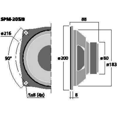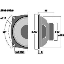 Her er du: Disconetto » LYD » Højttalere » Højttaler enheder » Hi-Fi mellemtone højttalere 8'' højttaler - SPM-205/8 - MONACOR På lager På lager, 2-4 dage Bedømmelse for 8'' højttaler - SPM-205/8 - MONACORProduktet er endnu ikke bedømt 319,00DKK ved 1 stk. Vis uden moms Trustpilot Hi-fi bass-midrange speakers, 150WMAX, 70WRMS, 8Ù (/8) and 4Ù (/4) Hi-fi bass-midrange speakers, 70 W, 8 Ω (/8) and 4 Ω (/4)Excellent replacement speakers of the same quality as from the original equipment manufacturerCoated low-resonance paper coneLong-term stable rubber surroundTo be used preferably in closed or transmission line cabinets Impedance (Z)8 ΩTransmission method-Frequency rangef3-5,000 HzResonant frequency (fs)37 HzRec. crossov. frequ. (fmax.) (12 dB/oct.)-Power rating70 WPeak music power output150 WSensitivity89 dB/W/mMax. rated SPL-Max. voltage-Radiation angle, horizontal-Radiation angle, vertical-Suspension compl. (Cms)0.75 mm/HMoving mass (Mms)22 gMech. Q factor (Qms)2.95Electr. Q factor (Qes)0.92Total Q factor (Qts)0.7Equivalent volume (Vas)54 lDC resistance (Re)7.2 ΩForce factor (BxL)6.5 TmVoice coil induct. (Le)0.7 mHVoice coil diameterØ 25.5 mmVoice coil formeraluminiumLinear excursion (XMAX)± 3 mmEff. cone area (Sd)210 cm2Magnet weight380 gMagnet diameterØ 80 mmMounting cutoutØ 183 mmMounting depth80 mmMounting hole diameterØ 216 mmHole spacing X-axis-Hole spacing Y-axis-DimensionsØ 200 mm x 88 mmOutside diameterØ 200 mmWidthØ 200 mmHeight-Depth88 mmProtective class-Admiss. ambient temp.0-40 °CWeight1.4 kgPacking unit1Type of speaker8" Varenr.: 105390 Vi anbefaler Højttalerterminal - ST-955G - MONACOR DKK 70,00 Monteringsskumliste. 2 x 5 mm. Pakke med 5 stk. á 1,5 meter DKK 49,00 Monteringsskrue 4 x 12 mm. 100 stk. DKK 91,00 Højttalerskum. 4 cm. 2 stk. á 50 x 100 cm. DKK 309,00 Kunder købte også 3'' højttaler - SPX-31M - MONACOR DKK 236,00