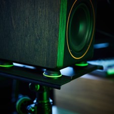The Gravity Absorber pucks can be placed freely under a loudspeaker (e.g. studio monitor) and achieve a decoupling of the loudspeaker cabinet and the installation surface due to their silica gel surface. This significantly reduces vibrations and oscillations and makes the stereo image more precise by reducing acoustic smearing and discolouration.