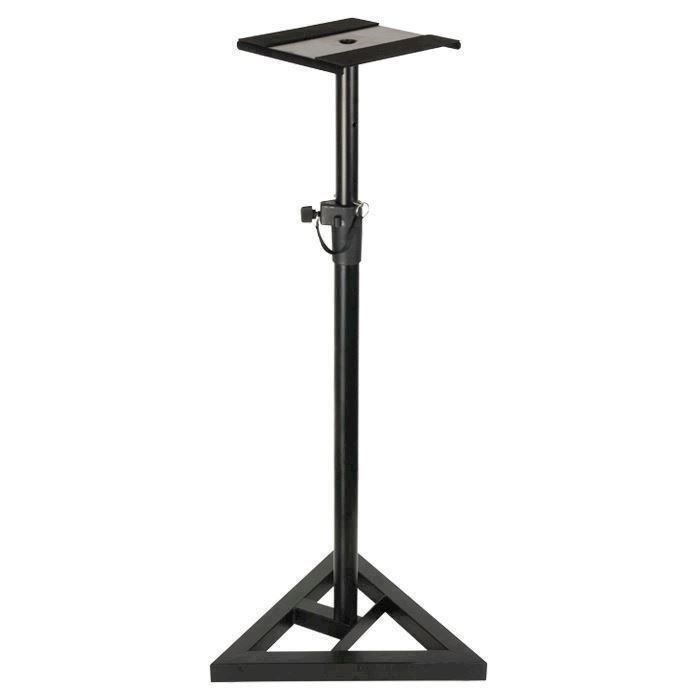 This universal studiomonitor stand is made for loudspeakers till 35 kg. It is made of black powder-coated pipes which have a diameter of 35 / 40 mm. It is height-adjustable in 12 cm steps, a toggle screw and a safety pin provide safety even when loaded with heavy speakers.