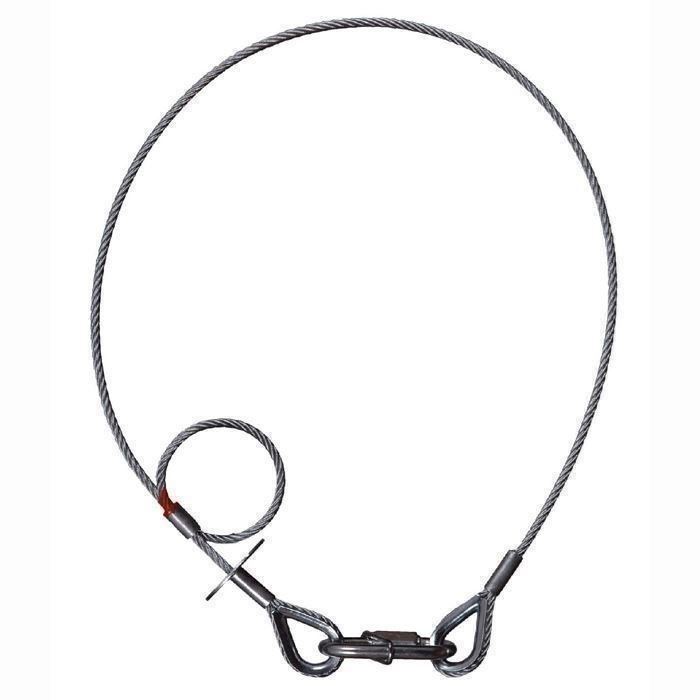 When conventional wire ropes are used, high levels of linear momentum can result if secured equipment falls. SAVEKINGS wire ropes incorporate a loop with a brake clamp. In the event of a fall, the loop constricts, thus absorbing the high shock forces. A color marking on the brake clamp serves as an indicator that the rope is in good condition.