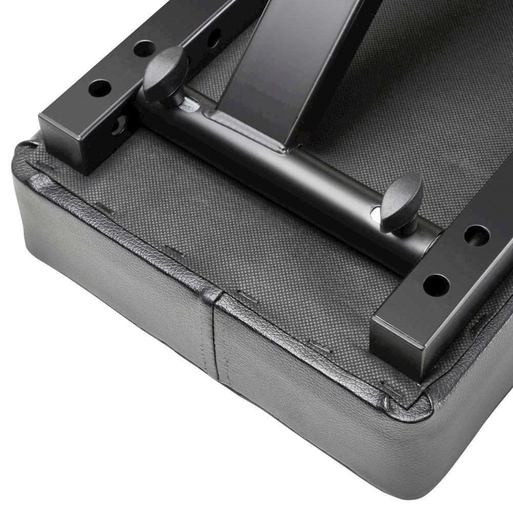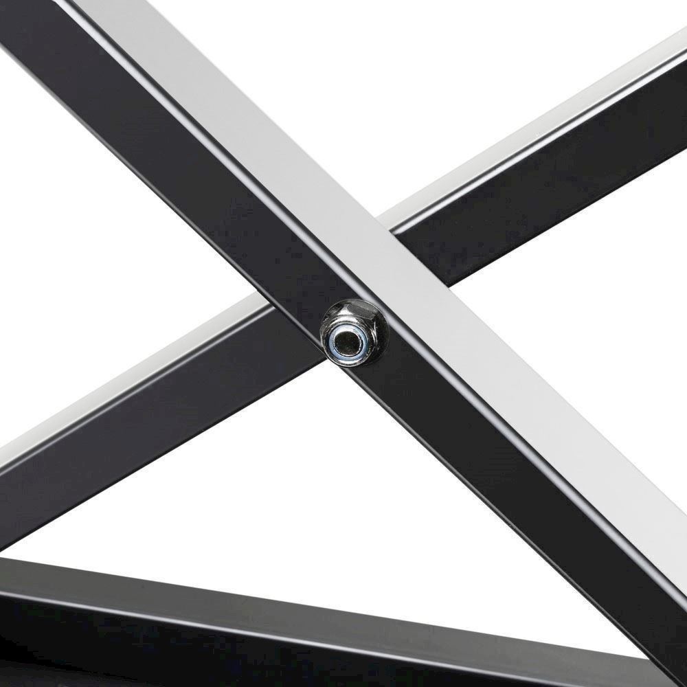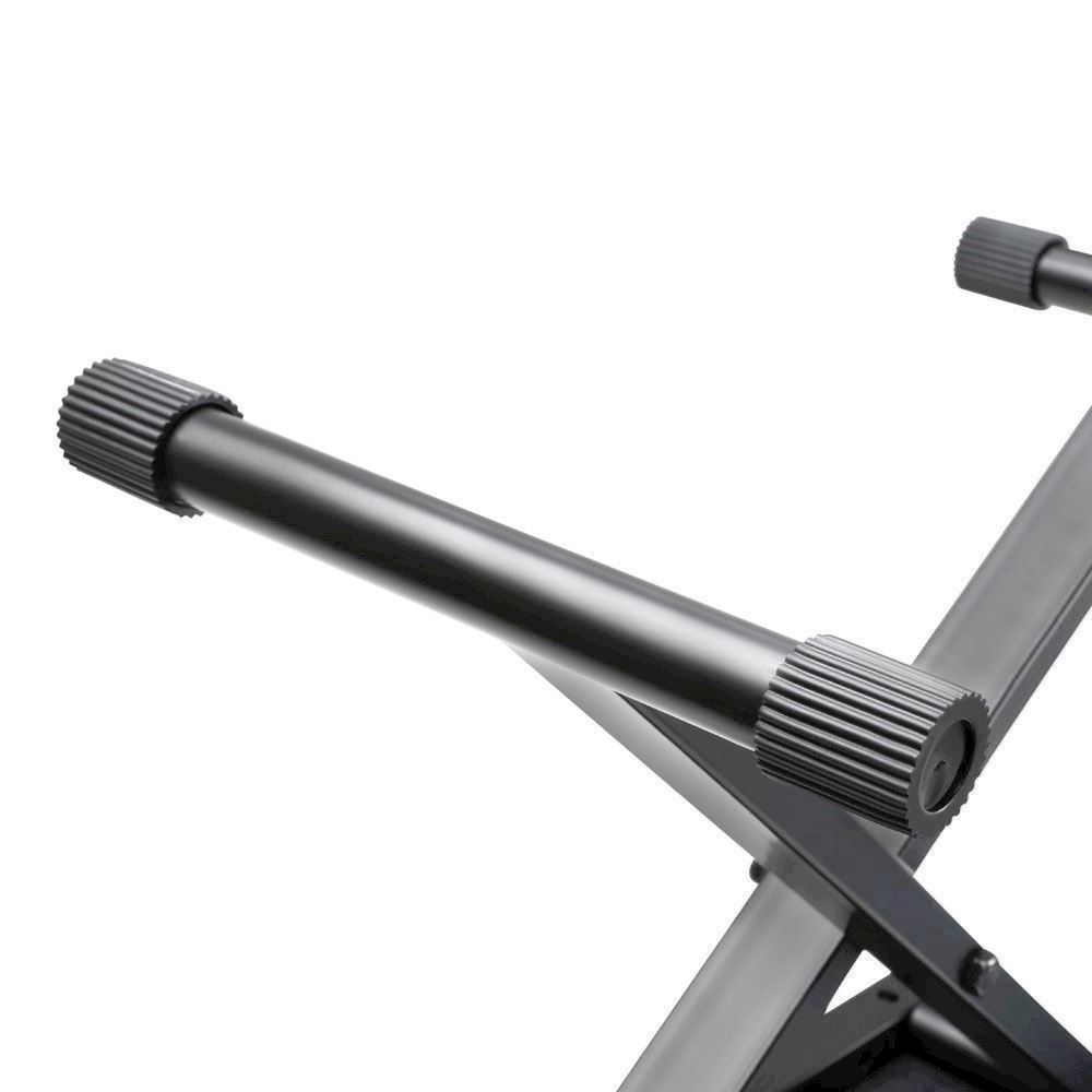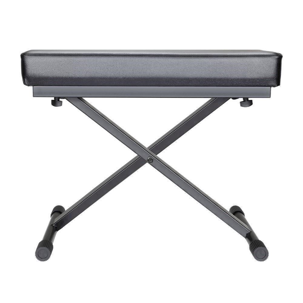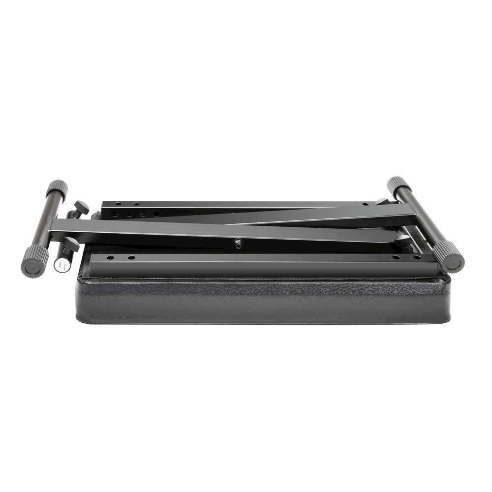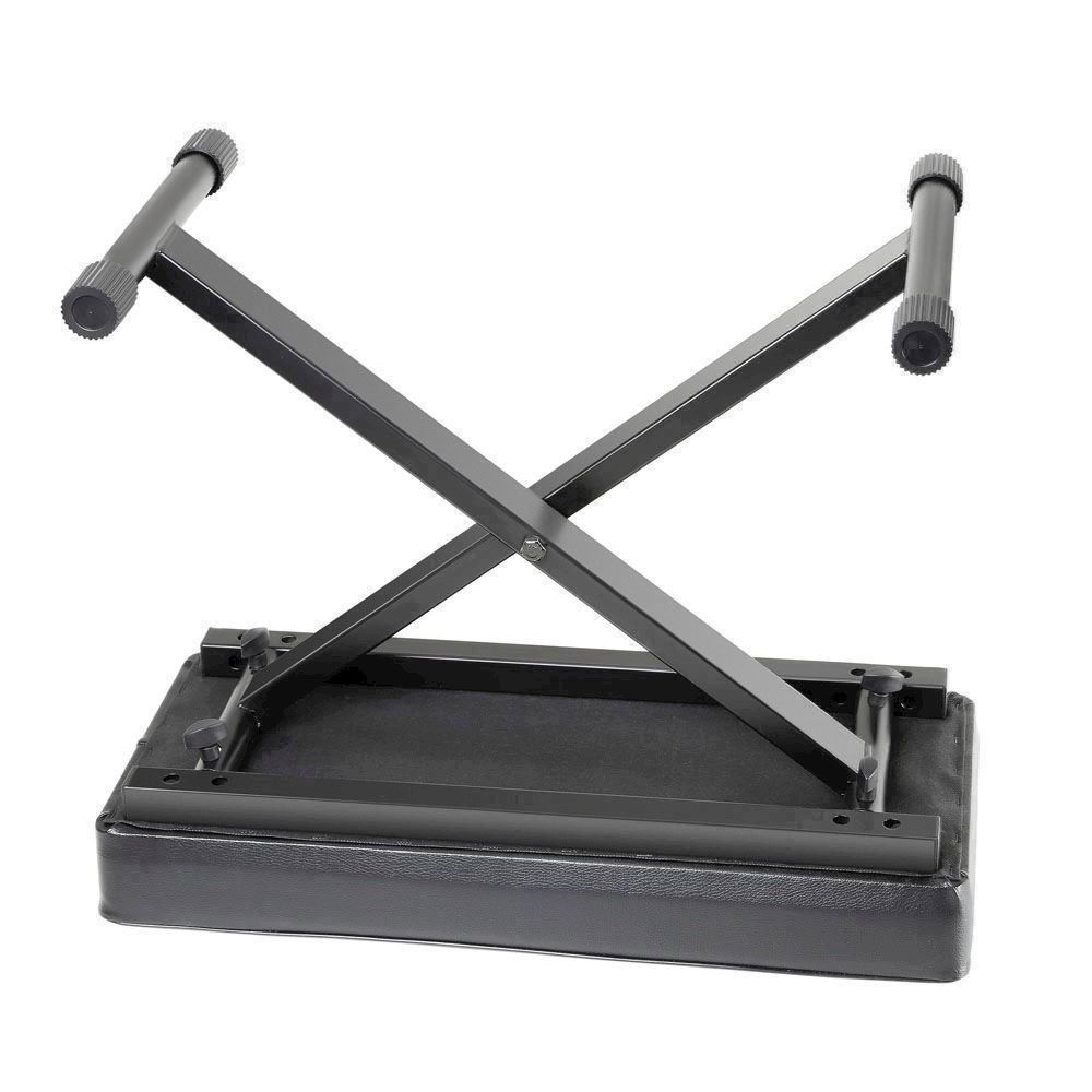 The SKT 17 is an ultra comfortable single X brace keyboard bench with a 52 x 24 cm high density foam padded seating area and adjustable height from 49 to 58 cm. The durable construction is made of black powder coated heavy duty steel. The legs feature non-slip rubber ends and fold completely flat for easy transport and space saving storage.