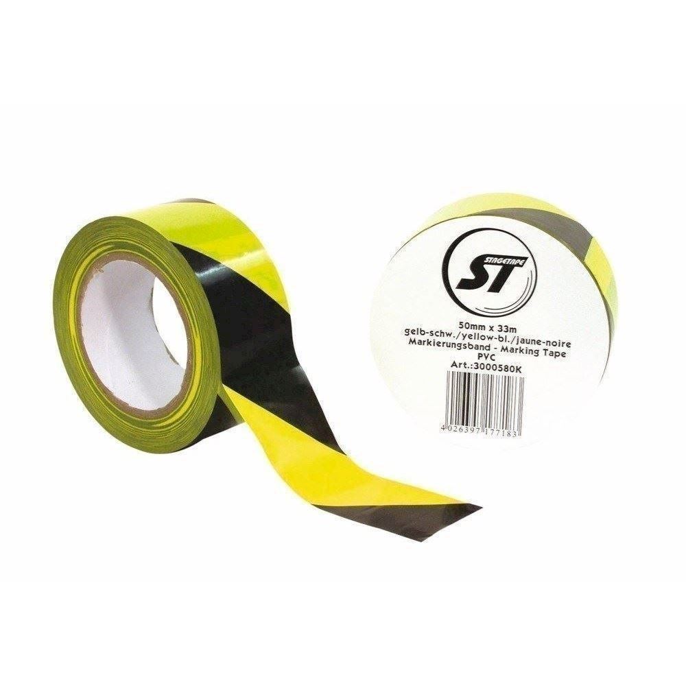 PVC Advarselstape med synlige sorte/gule striber som er ideel til afmærkning "no-go" områder. Tapen har en stærk lim, som gør, at den kan sidde på tørre og rene overfalder. Derudover er advarselstapen også vandtæt, så den kan bruges såvel udendørs som indendørs.