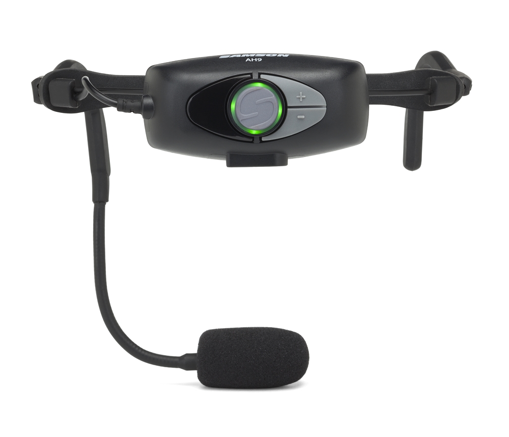 While Samson revolutionized wireless with the original AirLine transmitter, the AH9 is the exciting next chapter to the story. Thanks to its micro design, the AH9 transmitter is mounted directly on the included Qe headset, completely eliminating beltpacks and cables from the setup (ideal for active performers). In addition to a 300' operating range, the AH9 offers easily accessible Gain and Mute controls, a battery life LED indicator and an 8-hour rechargeable lithium-ion battery.