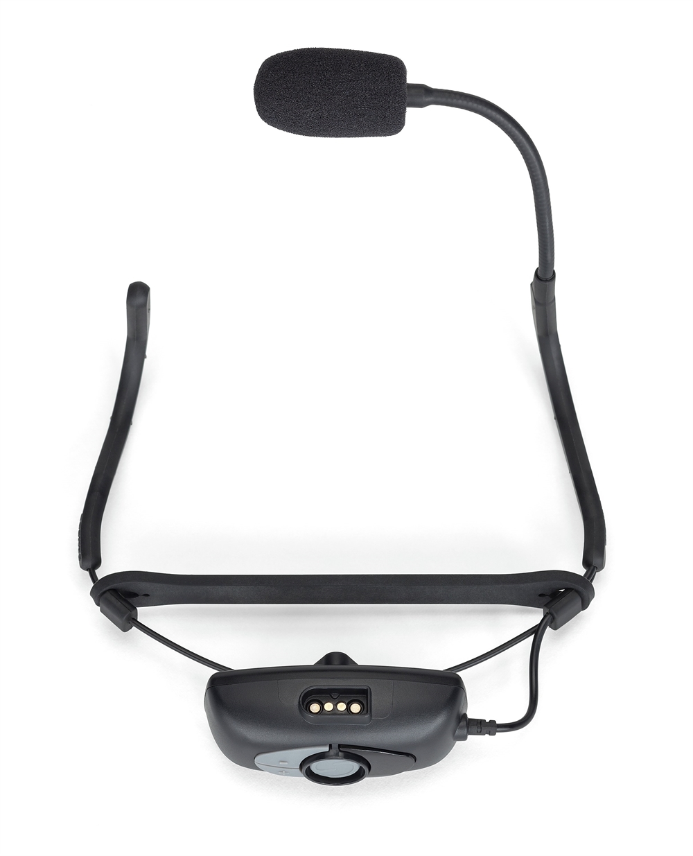 - Micro transmitter mounted directly to a double ear headset (no beltpack or cable required)