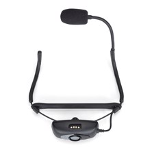 The AirLine 99m AH9 Fitness Headset system includes a Qe headset microphone, specifically designed for fitness instructors and high-energy performers. The Qe features a lightweight, double ear headset design with an adjustable/removable strap for a more secure fit. At the end of an adjustable stainless steel metal gooseneck sits the condenser microphone, whose water/sweat-resistant capsule prevents corrosion from the prolonged exposure to moisture that is to be expected in a fitness setting. And with a bidirectional pickup pattern, the Qe's condenser capsule takes hold of stunning audio while reducing background noise, minimizing feedback problems and effectively rejecting signals not originating directly in front of the mic.
