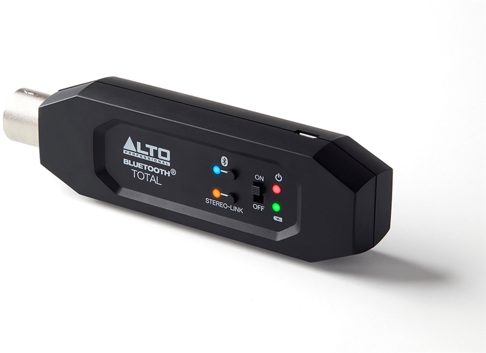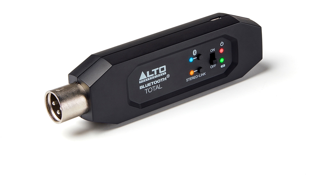Bluetooth Total er en XLR-baseret, genopladelig Bluetooth-modtager, der streamer lyd trådløst til mixere eller aktive højttalere. Med Bluetooth Total kan du hurtigt og nemt tilføje Bluetooth til enhver live-lydopsætning. Sæt Bluetooth Total i XLR-indgangen på en mixer eller aktiv højttaler, par din Bluetooth-enhed, og du er kørende! Du kan også trådløst kombinere to Bluetooth Total enheder, så du kan sende til flere højttalere. Et indbygget genopladeligt batteri holder Bluetooth Total kørende i over 6 timer. Bluetooth Total er et værdifuldt værktøj, som ingen audioprofessionel bør være foruden.