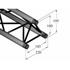 DECOLOCK DQ3 3-point truss systemDECOLOCK DQ3 is a 3-point truss system made of aluminum. The individual elements are connected via three cones, pivots and pins.The advantage of the conical connection system is that the cones completely fit into the main chords so that highest load capacity is guaranteed. The Quick-Lock system enables fast, efficient and highly aesthetic assembly when the truss constructions are frequently assembled and dismantled.The three main chords are made of 35 mm aluminum tube with 2 mm wall thickness and offer sufficient strength at a low weight. The braces have a diameter of 10 mm with 2 mm wall thickness and provide the system with a decorative appearance.With DECOLOCK, you can realize compact installations with low self weight, e. g. for shop displays, shop decorations, exhibitions, interior design, fair booths, discotheques and theatres.DECOLOCK is primarily designed for decorative installations and can be used for permanent or temporary installations due to its highly aestethic appearance. The advantages of this system are the compact construction with 220 and 195 mm outer dimensions, low weight, optimum strength along with easy and quick assembly.The documentation of this truss system is closely related to the Codes of Practice SQ P1 - Truss Systems published by the VPLT/PLASA. The load table as calculation base can be downloaded from the Internet before buying the product!Please note: this truss system must never be combined with other systems!
