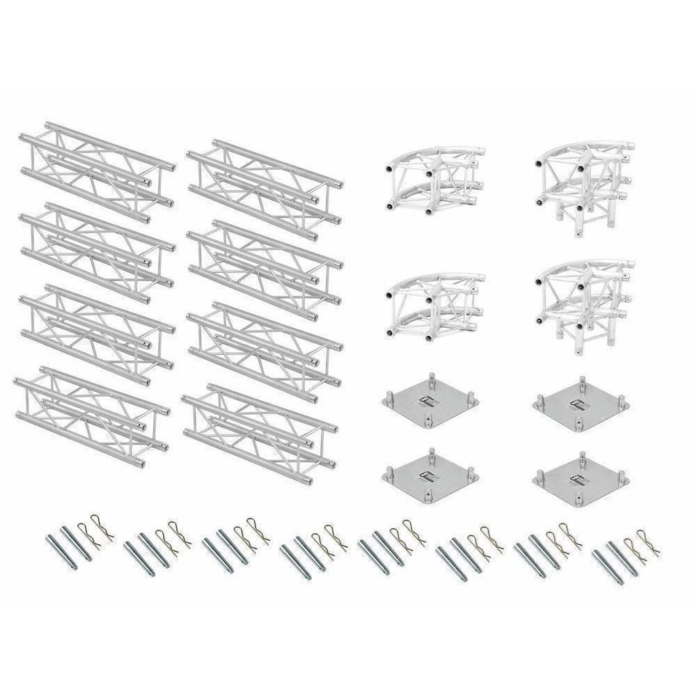 QUADLOCK 6082 4-point truss systemQUADLOCK 6082 is a 4-point truss system made of aluminum. The individual elements are connected via four cones, pivots and pins. QUADLOCK 6082 is made of EN-AW 6082 T6 (AlMgSi1 T6) alloy for even higher loads.The advantage of the conical connection system is that the cones completely fit into the main chords so that highest load capacity is guaranteed. The Quick-Lock system enables fast, efficient and highly aesthetic assembly when the truss constructions are frequently assembled and dismantled.The four main chords are made of 50 mm aluminum tube with 2 mm wall thickness and offer a good relation between strength and weight. The braces have a diameter of 16 mm with 2 mm wall thickness and leave enough space for installing couplers, hooks and clamps.With 290 mm outer dimensions, QUADLOCK QQTR is a stable truss system for higher loads and extended durability. This system is mainly designed for intense use in stage installations, fair installations, event installations but also for permanent installations in discotheques and theatres.Its polished surface makes this universal system a real eyecatcher. Due to its wide range of standard system lengths, corners and accessory, this system is highly versatile and offers unlimited design possibilities.The production of this truss system is TUV-monitored. The load table as calculation base can be downloaded from the Internet before buying the product!Please note: this truss system must never be combined with other systems!