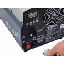 The HZ-350 Hazer is a concession to customers demanding a reliable and comfortable radio control. Et voilà, the newly designed transmitter perfectly fits the hand and has an operating distance of up to 50 meters. That should be enough a distance for most applications. Its options with only two buttons (on/off) is kept easy with intent. Easy is the keyword, as the innovative LCD control offers a clear and uncomplicated structure. It allows users to set the hazer directly by just moving their fingertips. Simple - but convincing.