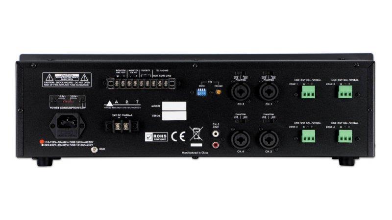 N?r der registreres et signal p? den f?rste indgang, vil de andre kanaler automatisk s?nke lydstyrken, s? meddelelser tydeligt kan h?res overalt i et spillested. Bagerste terminalforbindelser tillader ogs? tilslutning af et ekstra telefonsignal til persons?gning.