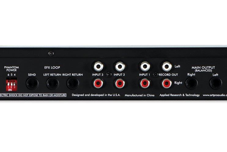 Kanal 1 til 3 har stereo RCA-indgange, og kanal 3 har ogs? en 1/8 stereoindgang p? frontpanelet.