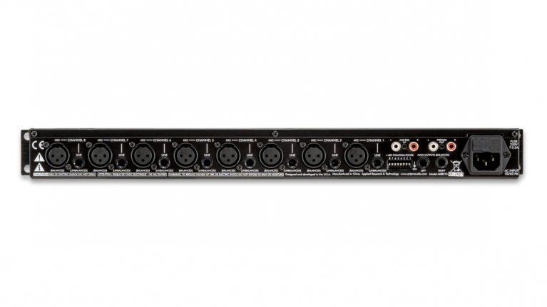 Connections: XLR female balanced (Mic, channels 1-8), 1/4-inch TS