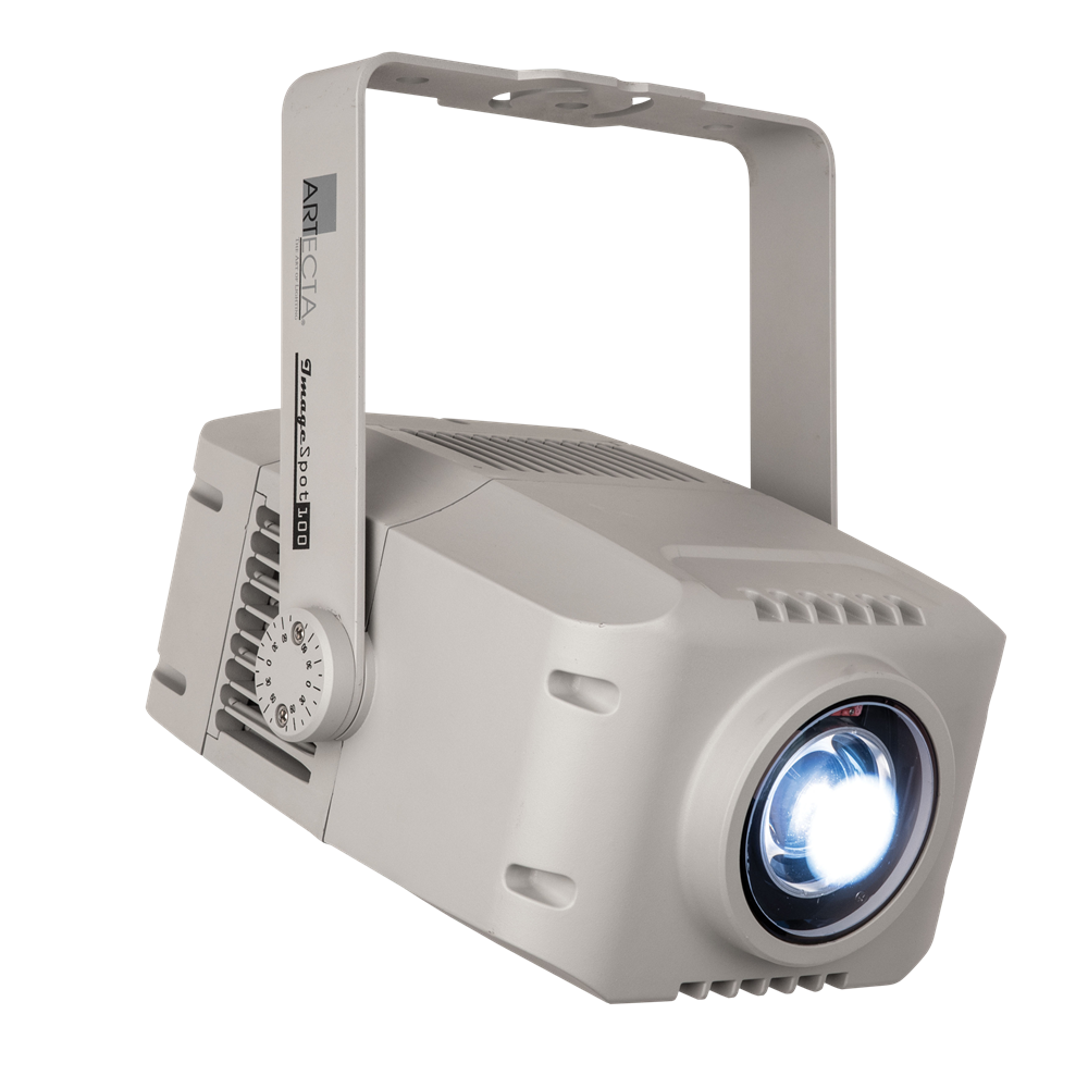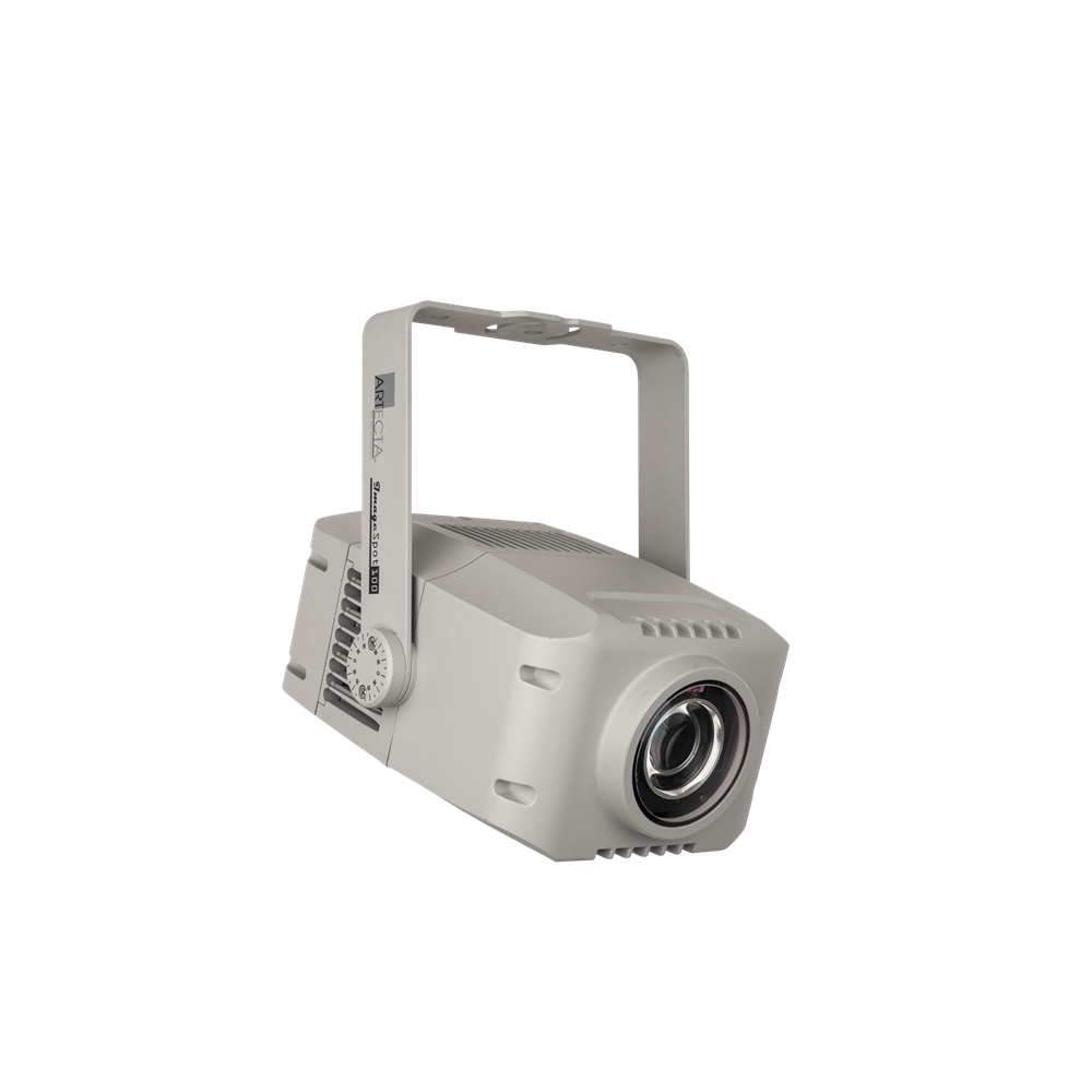 Artecta Image Spot 100 er en 100 watt gobo-projektorspot med IP65-klassificering og høj >80 CRI, egnet til udendørs brug. Dens 7 udskiftelige gobos + åben kan projiceres i 7 dichroiske farver + hvid og kan indekseres, hvilket betyder, at gobos roterende position kan genkaldes. En 3-facetteret roterende prisme giver dig mulighed for at skabe dynamiske effekter. Derudover kan en riple-effekt aktiveres for at efterligne viftende flagmønstre og skabe en ekstra dimension til projektionen. Image Spot 100 er udstyret med en justerbar 10° - 30° zoomfunktion inklusiv strålefokus for at skalere projektørstørrelsen tilpas. Alle parametre kan justeres manuelt og via DMX. Syv scener kan programmeres og gemmes til brug i stand-alone.