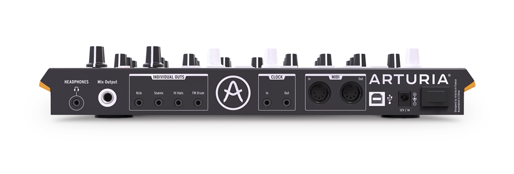 Group outputs: 4 additional outputs to send the Kick, Snares, Hi Hats, or the FM Sound out separately for post-processing.