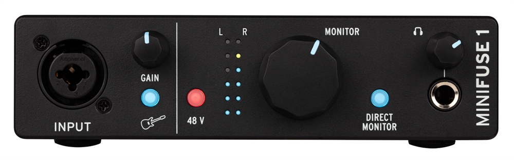 - Backlit controls: MiniFuse’s knobs light up in response to your input, turning red when the signal is too high