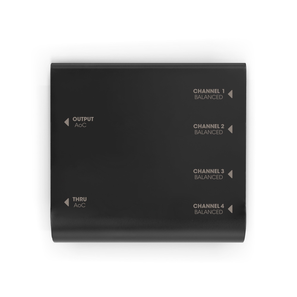 - 4 balanced analogue or 8 digital AES3 audio channels over Cat5e or higher (Ethernet cable not included)