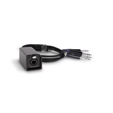 The P AOC L TRS M is a multicore adapter cable that facilitates the stable transmission of 4 separate analog and balanced audio signals through a network cable (not included). The 6.3 mm TRS jacks are numbered and color-coded for easy identification. The Ethercon connection is safeguarded against unlocking to prevent accidental cable disconnection.
