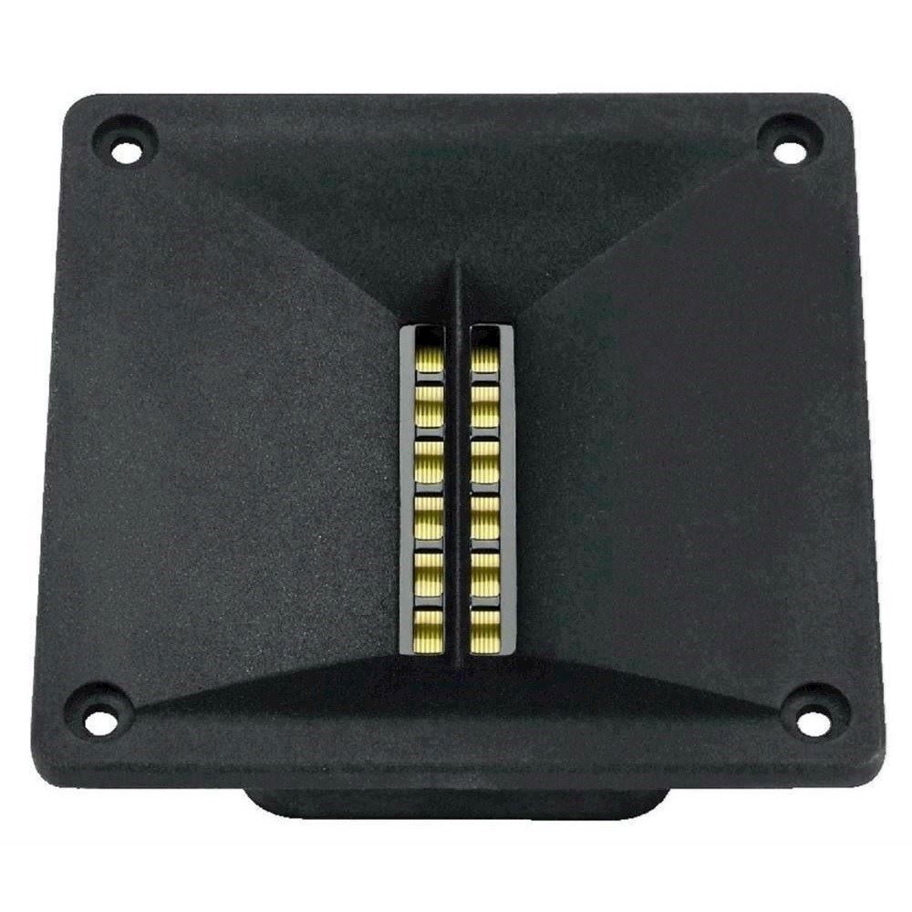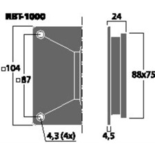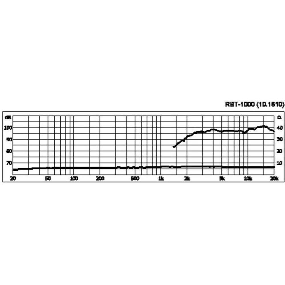 Her er du: Disconetto » LYD » Højttalere » Højttaler enheder » Hi-Fi diskanter » Bånd Bånddiskant - RBT-1000 Ikke på lager Kontakt os. Bedømmelse for Bånddiskant - RBT-1000Produktet er endnu ikke bedømt 909,00DKK ved 1 stk. Vis uden moms Trustpilot Ribbon tweeter for PA and hi-fi, 80WMAX, 40WRMS, 6Ω Magnetostatisk højttaler med waveguide Diskant-system fra L-RAY/1000 Ribbon tweeter for PA and hi-fi, 40 W, 6 ΩMagnetostatic speaker with waveguideTweeter system from the L-RAY/1000Fine and brilliant reproduction of the high rangeFor use from 3,000 Hz (hi-fi) or 4,000 Hz (PA) on via 18 dB filterDiecast aluminium horn front attachment, neodymium magnetVertical or horizontal mounting possible due to square front panel Impedance (Z)6 ΩTransmission method-Frequency rangefx-22,000 HzResonant frequency (fs)1.6 kHzRec. crossov. frequ. (fmax.) (12 dB/oct.)> 2,500 HzPower rating40 WPeak music power output80 WSensitivity96 dB/W/mMax. rated SPL-Max. voltage-Radiation angle, horizontal-Radiation angle, vertical-Suspension compl. (Cms)-Moving mass (Mms)-Mech. Q factor (Qms)-Electr. Q factor (Qes)-Total Q factor (Qts)-Equivalent volume (Vas)-DC resistance (Re)-Force factor (BxL)-Voice coil induct. (Le)-Voice coil diameter-Voice coil former-Linear excursion (XMAX)-Eff. cone area (Sd)-Magnet weight-Magnet diametermagnetostatic speakerMounting cutout94 x 94 mmMounting depth34 mmMounting hole diameter-Hole spacing X-axis87 mmHole spacing Y-axis87 mmDimensions104 x 104 x 24 mmOutside diameter-Width104 mmHeight104 mmDepth24 mmProtective class-Admiss. ambient temp.0-40 °CWeight237 gPacking unit1Type of speaker- Varenr.: 101610 Vi anbefaler 4'' højttaler - SP-4/60PRO DKK 248,00 8'' højttaler - SP-8/150PRO - IMG STAGE LINE DKK 559,00 Mont.skrue 4x16mm (16) - MZF-8614 - MONACOR DKK 56,00 Aktiv Line Array max 1000W - IMG L-RAY/1000 DKK 18.749,00