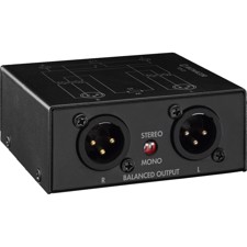 2-kanals audio balanceringstransformator Et ubalanceret lydsignal konverteres passivt (uden strømforsyning) til et balanceret signal ved hjælp af en lydtransformator (fordoblet i enheden). Derudover kan en DIP-switch anvendes til at generere et mono-signal (tabsløst, da det ikke kobles via modstande) fra to inputsignaler (stereo). Enheden kan også betjenes i den modsatte retning, dvs. ubalancerede signaler kan genereres fra balancerede signaler. Det eneste, der kræves, er XLR/XLR-adapteren NA-3FF, som er tilgængelig som tilvalg. - RCA og 3,5 mm stereoindgange - 3-pols XLR-udgange - 2-pols DIP-switches til skift mellem stereo/mono-konvertering - Sort metalhus.