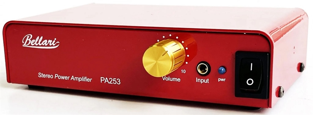 PA253 er en 2x 50W stereo kraftforstærker, designet til den kritiske hi-fi entusiast, der har brug for et enkelt signal, feks fra en CD-afspiller eller pladespiller (med RIAA-forstærker), og som ikke har lyst til at betale for andet end kvaliteten. Alle Bellaris produkter designes, forarbejdes og samles i USA. På bagsiden finder du et par RCA-indgange og skrueterminaler til passive højttalere, samt indgang til strømforsyningen. På forsiden et volume-potmeter og en AUX indgang på mini-jack. Denne overtager signalet fra RCA-indgangen på bagsiden - supersmart hvis man hurtigt vil tilkoble feks. en mobiltelefon eller laptop.