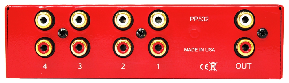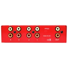 The chassis is made from .090 steel, meaning it is 3 times thicker than most chassis. Four pairs of RCA inputs allow for connection to all your music sources, and one pair of gold plated RCA jacks to go to your amplifier.