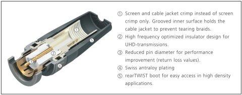 NBNC75BFG7X rearTWIST UHD BNC-kabelstikket er specifikt designet til højopløselige video-signaltransmissioner. Stikkets unikke isolator og kontakt pin-design sørger for at signaltabet er minimalt ved 4K og 8K signaler.