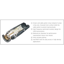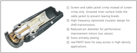 The rearTWIST UHD BNC connectors are specifically designed for high resolution video signal transmissions. Due to the unique insulator and contact pin design, the connectors feature low return loss values for 4K and 8K signals.
