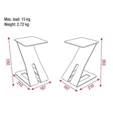 Monitor Z-Stand er et sæt med to sorte moderne monitorstande, der er ideelle til små monitorhøjtalere. Stativerne har en højttalerplatform på 15x18 cm og kan bære en vægt på op til 15 kg. Desuden, de har en højde på 25,3 cm, hvilket kan hjælpe med at opnå optimal lydkvalitet. Fire gummipuder i bunden samt på bakken vil mindske kontaktstøj og sikre et fast greb.