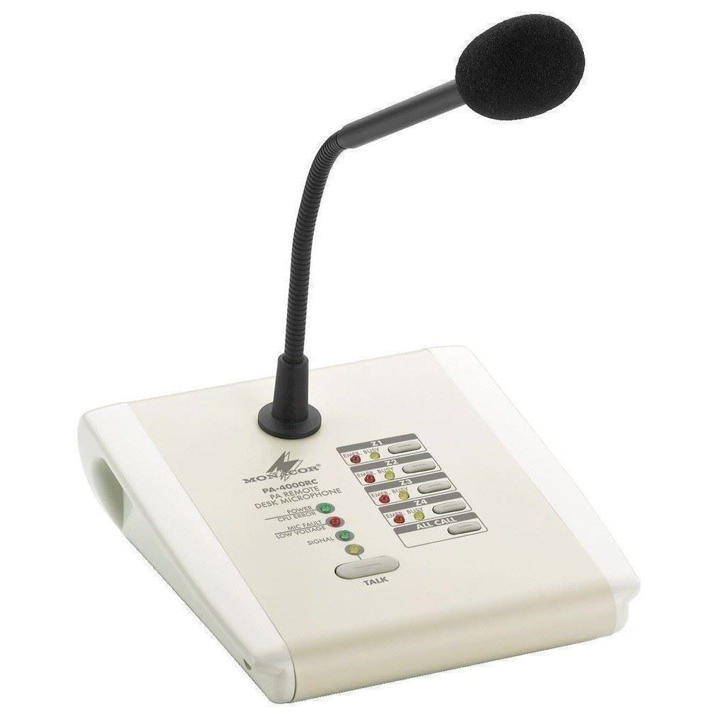 Her er du: Disconetto » LYD » Installationslyd » Talevarsling Bordmikrofon t/PA-40120 - PA-4000RC - MONACOR På lager På lager, 2-4 dage Bedømmelse for Bordmikrofon t/PA-40120 - PA-4000RC - MONACORProduktet er endnu ikke bedømt 1.919,00DKK ved 1 stk. Vis uden moms Trustpilot PA zone paging desktop microphone, for the connection to PA-40120 and PA-6040MPX.Selection buttons for 4 zones, for activating one or several zonesALL CALL button for activating all of the 4 zonesAutom. chime via microphone announcement button (talk)LED status indication for the zone buttons (busy, emergency), power, mic fault, signal and talkBuilt-in gooseneck electret microphoneAdjustable microphone sensitivityChime can be activated or deactivated as required24 V power supply via PA-40120 or PA-6040MPXTwo RJ45 jacks for connection to PA-40120 or PA-6040MPX and additional microphones PA-4000RCSupplied with connection module for PA-40120 and PA-6040MPXUp to 32 x PA-4000RC can be connected to PA-40120 or PA-6040MPX via busSupplied with 3 m connection cable (Cat. 5e) TypePA desktop microphoneVersion-Transmission methodcablePolar pattern-SystemelectretCarrier frequency range-Transmitting power-Power supplyvia PA-40120Operating time-Audio frequency range-Nominal impedance-SensitivityselectableS/N ratio-Max. sound pressure-Power supply-Gooseneck length-Housing material-Admiss. ambient temp.0-40 °CDimensions-Weight0.9 kgCableCat. 5e, 3 mConnection2 x RJ45 Varenr.: 236010 Vi anbefaler PA-forstærker 4 zoner - PA-40120 - MONACOR DKK 11.439,00 Zonemixer - PA-6040MPX - MONACOR DKK 5.719,00