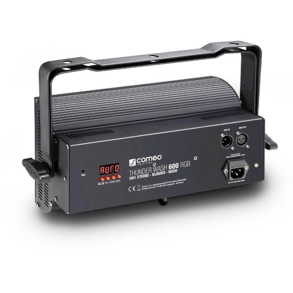 Thunder Wash 600 RGB har 3-pin XLR-stik til DMX-indgang og -udgang, 8 DMX-tilstande med dæmper, flashfrekvens og -varighed samt mulighed for at fungere som Master, Slave eller Standalone. Et letlæseligt LED-display med knapperne Mode, Enter, Up og Down bruges til manuel betjening, mens den indbyggede mikrofon muliggør lydstyring.
