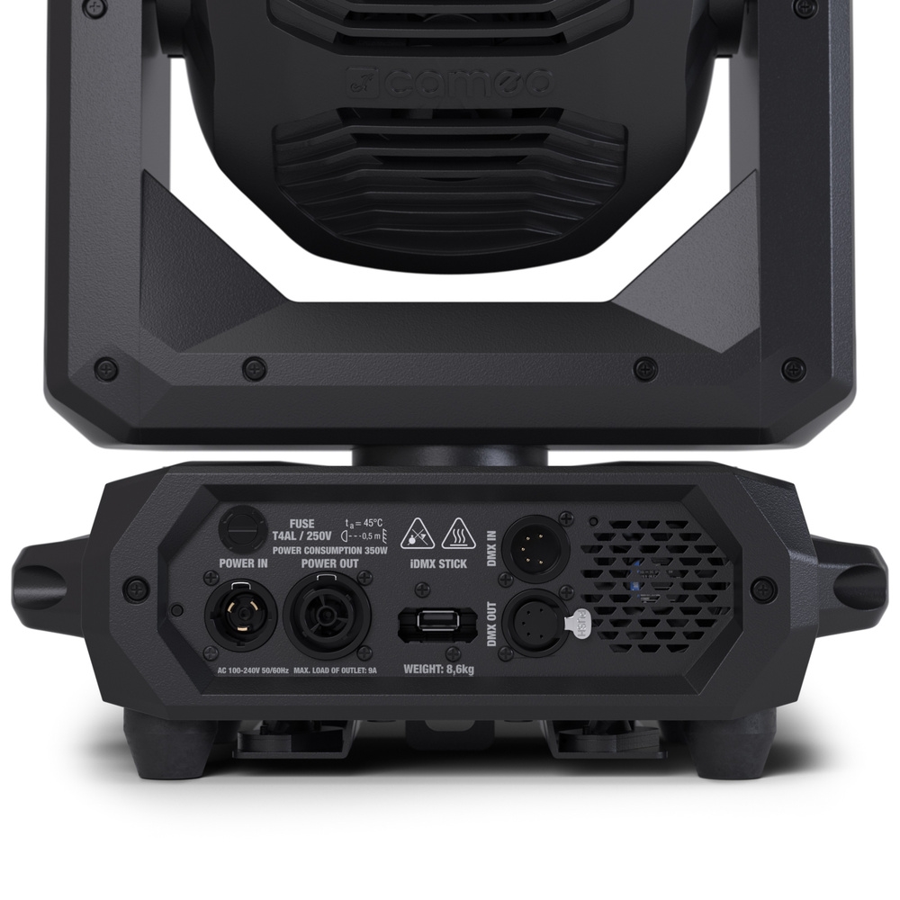 The compact wash moving head can be controlled via DMX512, RDM or wirelessly via W-DMX using the optional Cameo iDMX stick. On the wash light itself, buttons and an OLED display provide a convenient basic setup.