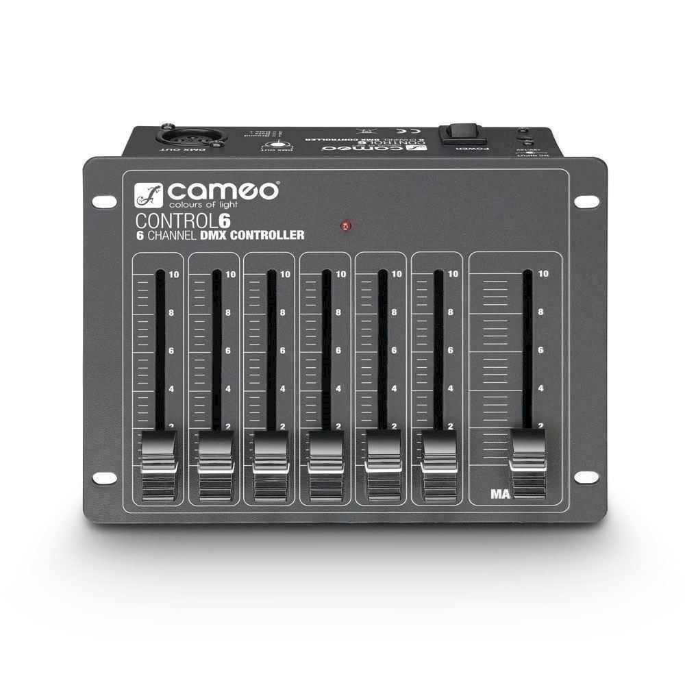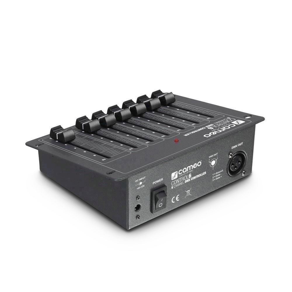 The Cameo CLCONTROL6 is an especially compact DMX controller with 6 channels that is perfect for controlling small lighting systems. It can be mounted in many ways and of course can also be used as a freestanding unit; it is extremely easy to operate.