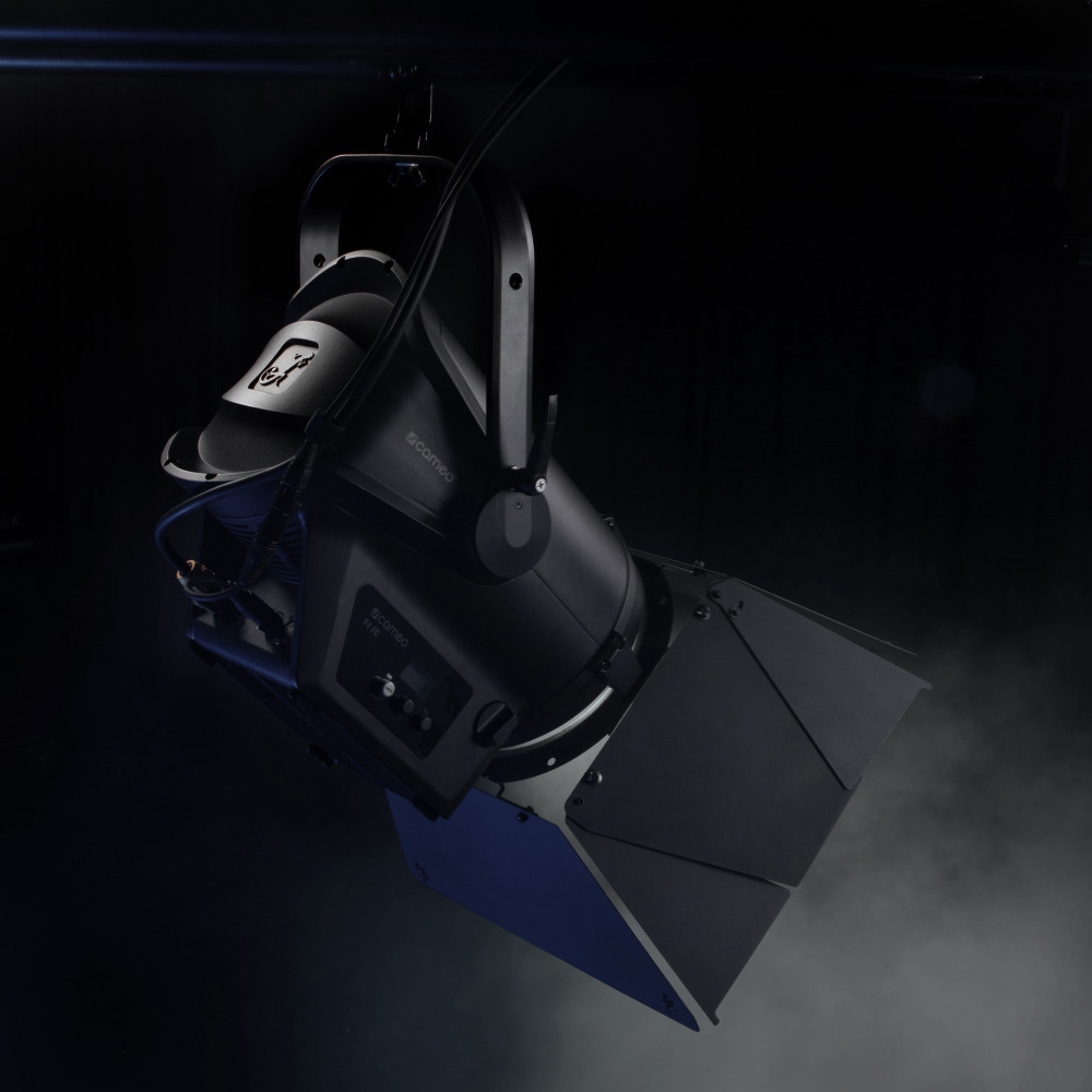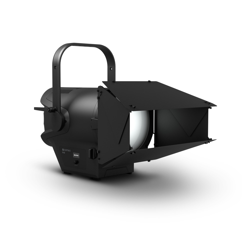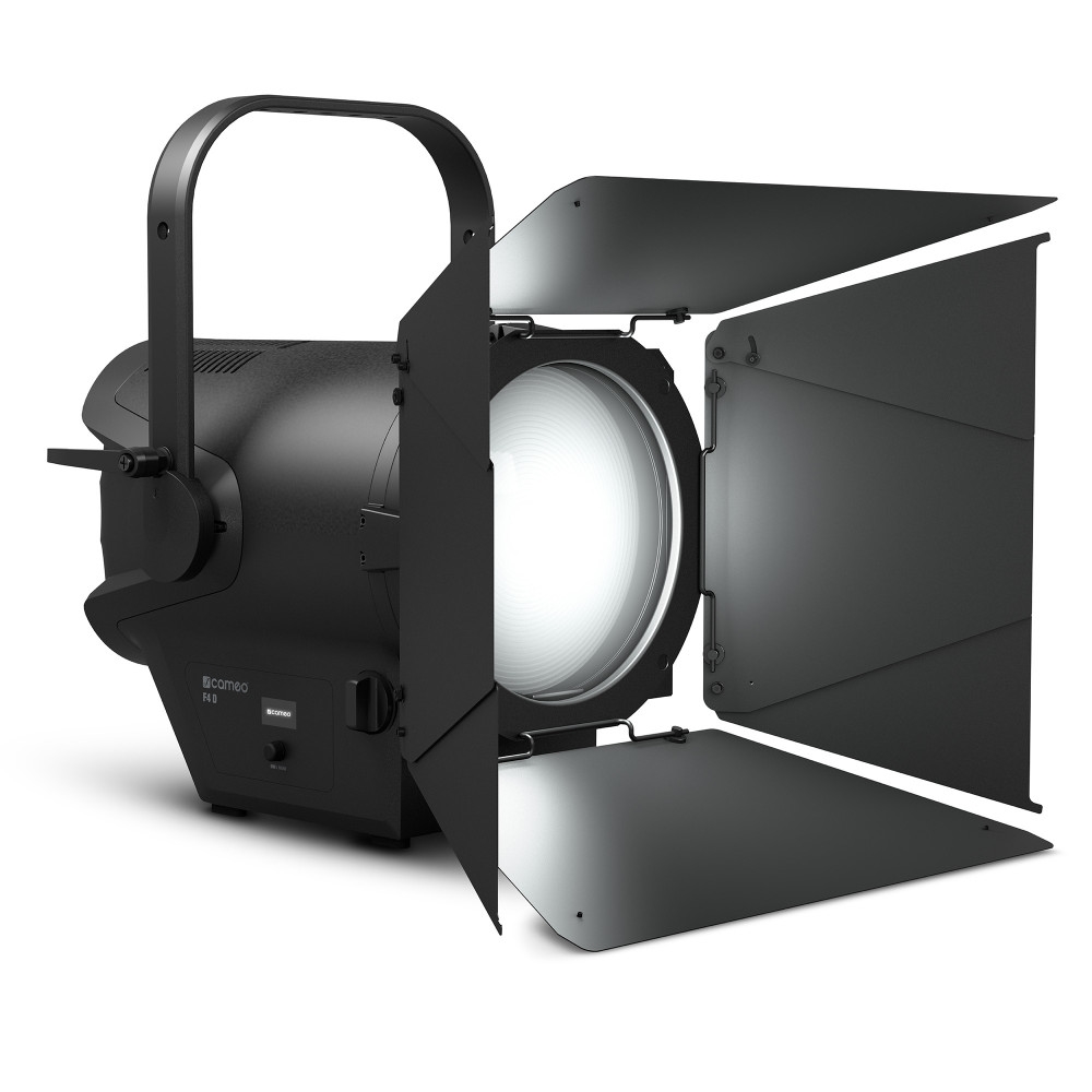 Natural white daylight in precise reproduction quality: The CAMEO F4 D is a professional Fresnel spotlight with the latest LED technology. It's an outstanding replacement for conventional halogen Fresnel spotlights that also leads to significant energy savings. The 250 mm high-quality lens is flooded with a powerful luminous flux of 34,000 lm. The RDM-capable spotlight creates a soft-edged beam of light with a continuously adjustable beam angle of 12° to 40° (beam angle) or 24° to 47° (field angle). Its 520-watt daylight LED has a colour temperature of 5,600 K and a service life of 50,000 hours. Its extremely high colour rendering index of 96 reproduces pure and natural colours.