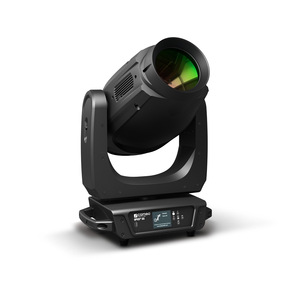 Illuminating stages with brilliant, lively colours, the Cameo OPUS® S5 is a compact super bright spot moving head with a powerful 380 W white LED engine, CMY mixing system and linear CTO correction. It is highly effective in venues of all sizes thanks to its wide zoom range. An additional colour wheel with 7 dichroic filters enables instant colour changes and split colour projection. The fixture has an enormous 17,500 lm output, huge illuminance of 39,000 lux at a distance of 5 meters and rapid 540° pan and 270° tilt movement. Permitting extensive beam control, the highly efficient optics feature an extra wide zoom range from 6° to 46° and stepless iris. A continuously variable frost filter provides soft, wash-like diffusion.
