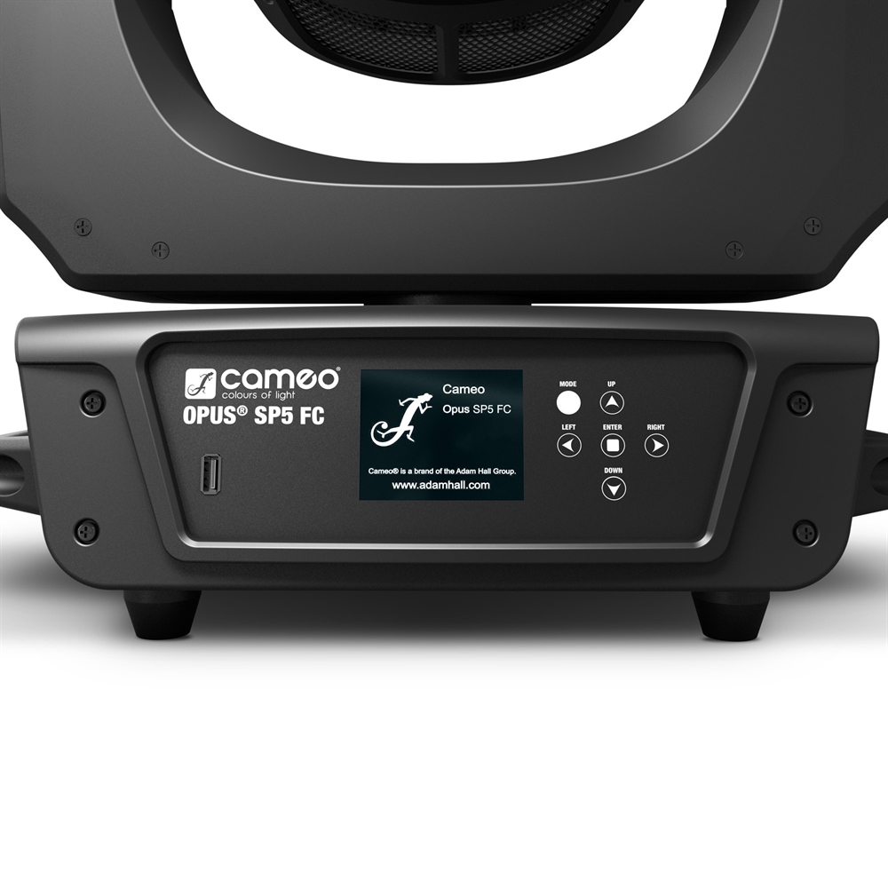 Create perfect displays for your light presentations with a broad colour palette and lightning-fast colour changes with the Cameo OPUS® SP5 FC. The powerful Profile Spot Moving Head reproduces even projection without colour shadows thanks to its high-quality optical system. It features a particularly long zoom range of 6° to 44°, plus a continuously variable iris diaphragm and motorised focusing. A continuously adjustable frost filter supplies a soft, washlight-like spread. With its flicker-free and almost noiseless operation, plus a colour reproduction index of over 90, the spotlight is superbly suited for use in theatre, film and TV production.