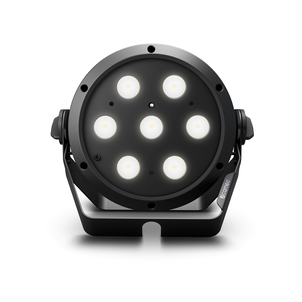 With its powerful light output of 1,380 lm, the ROOT PAR TW delivers enough power to light up bands and create a visual impact on small theatre stages and at exhibitions. The 7 x 4 W Dual tunable White LED is continuously adjustable from 3100 K to 6500 K, directly on the device if required, via the four buttons and the integrated OLED display. The unit is controlled via DMX in master-slave or stand-alone configuration. An integrated microphone facilitates sound synchronisation. In addition to the W-DMX_ control upgrade, an optional IR remote control is also available (CLPFLAT1REMOTE).