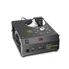 The Steam Wizard 2000 utilizes a powerful 1,200 watt heating element and high-performance pump to ensure consistent output with minimum warm-up time between jets. LEDs indicate the operating status and fluid level. The automatic shutdown feature prevents damage to the pump when the fluid tank runs empty. The Steam Wizard 2000 is operated via DMX in 4-channel mode or the included remote with illuminated buttons and rotary controls providing easy visibility in the dark.