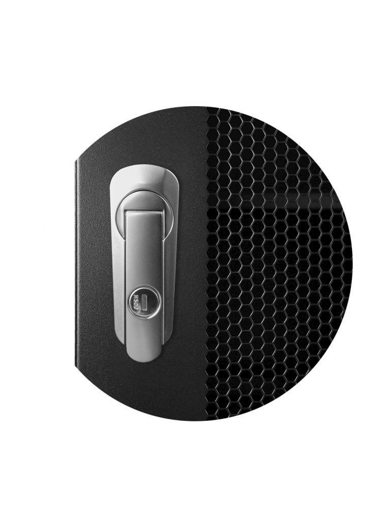 Perforeringen med hexagonal mønster giver en optimal luftstrøm gennem kabinettet.